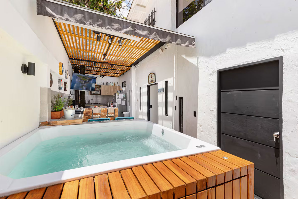 El área social está compuesta por cocina abierta, jacuzzi, deck, BBQ, TV 50″, sistemas de sonido y un pequeño jardín, perfecto para disfrutar con la familia o amigos.